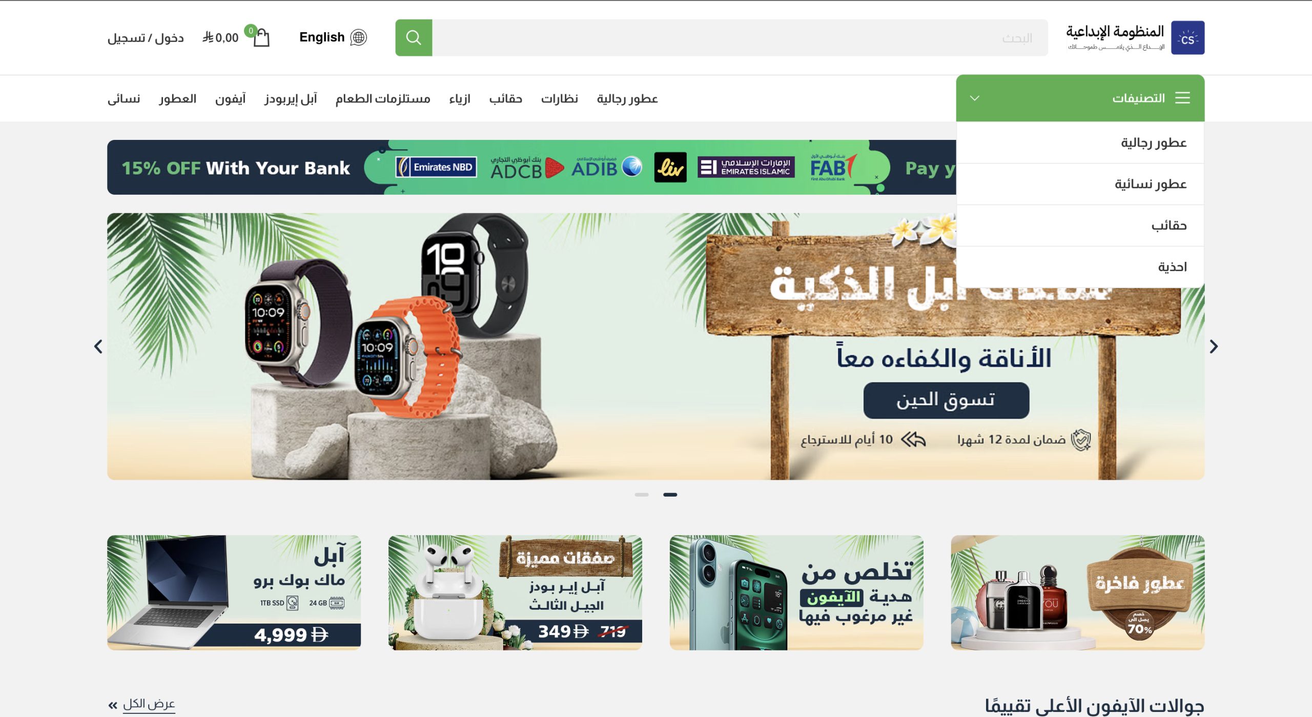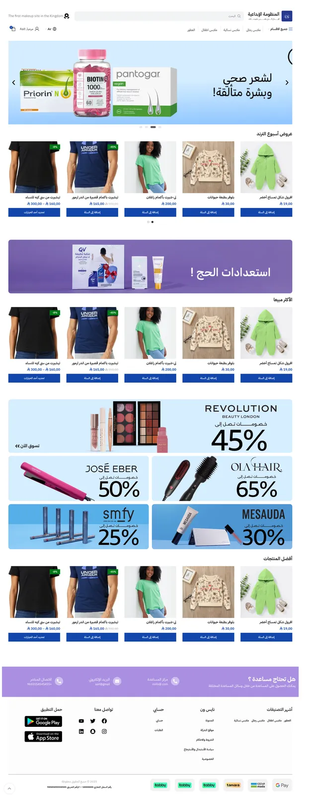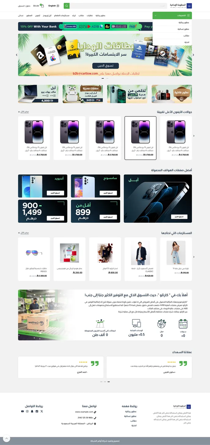 - ربط الدفع (مدى، أبل باي، فيزا) + الشحن