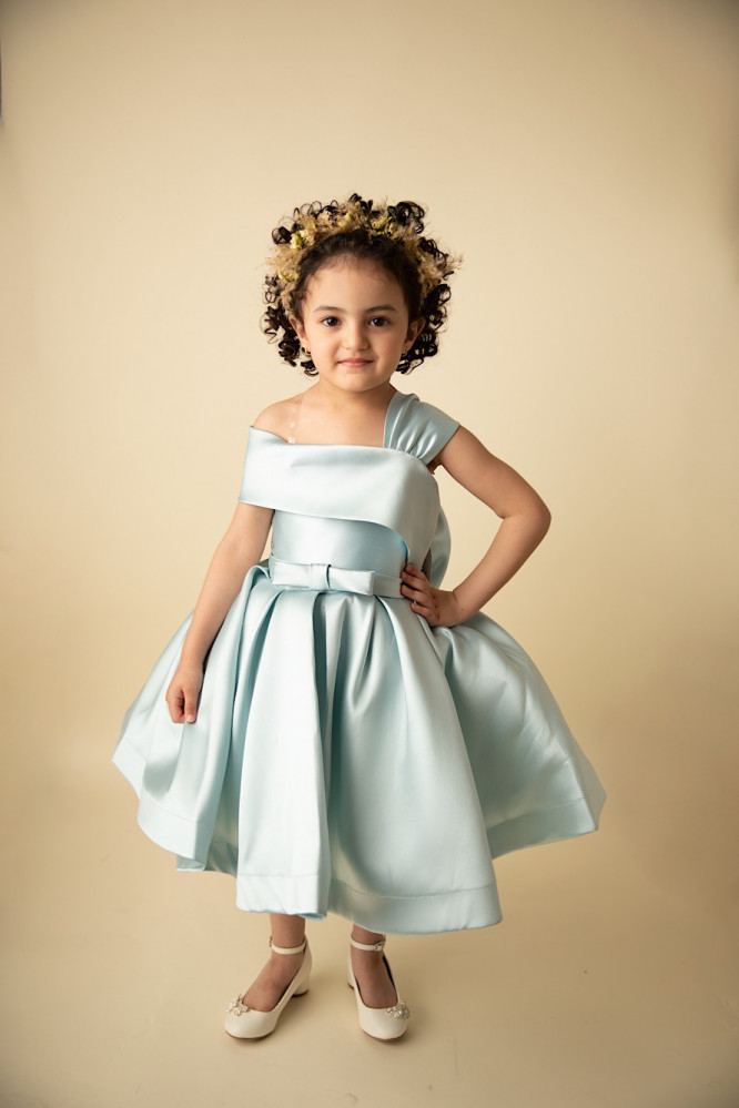 ستنعم طفلتك بإطلالة مشرقة مع هذا الفستان بتفاصيل كتف واحد و مزين بفيونكه ، فهو يتميز ببطانه داخلية مريحة لتحظى اميرتك بإطلالة مريحة في الحفلات و الاعراس.