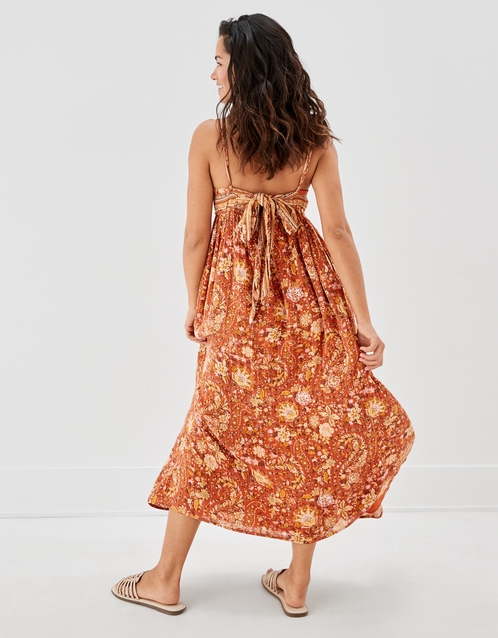 فستان خفيف وأنيق بخصر مرتفع وتصميم رباط من الخلف.