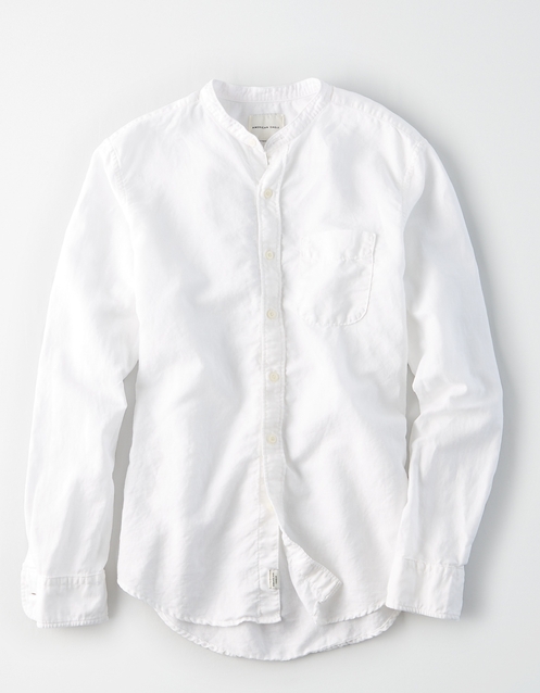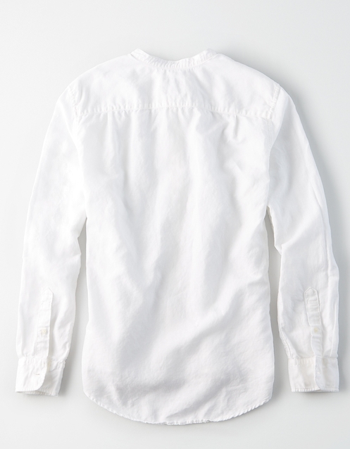 قميص بأزرار وياقة بجزء داخلي من الكتان