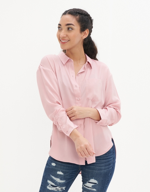 قميص فضفاض بزر إغلاق من الحرير